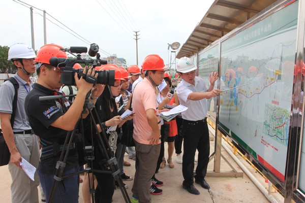 2014年6月5日,廣明高速SG06標(biāo)項(xiàng)目部作為廣明高速媒體行活動(dòng)的第一站迎來(lái)了境內(nèi)外24家媒體的30余位記者,分別就項(xiàng)目亮點(diǎn)、施工進(jìn)展等方面進(jìn)行了全面詳細(xì)的說(shuō)明并接受專(zhuān)題采訪。