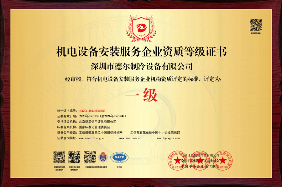 制冷設(shè)備安裝一級(jí)資質(zhì)證書