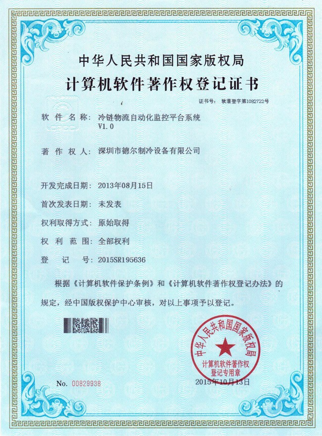 冷庫(kù)自動(dòng)控制及遠(yuǎn)程監(jiān)控系統(tǒng) 軟件著作權(quán)證書